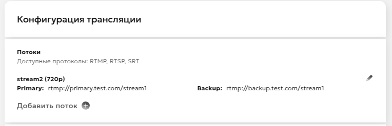 - Pull - мы забираем ваш поток по протоколам RTMP, RTSP, SRT, а также HLS по HTTP/HTTPS